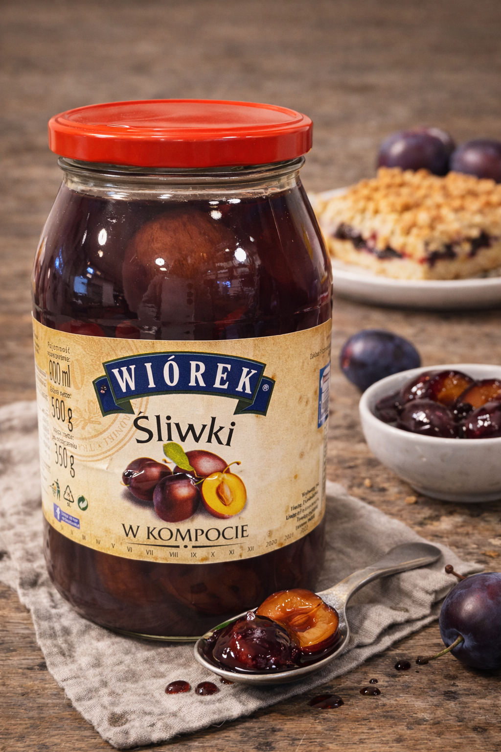 Kompot śliwkowy Wiorek to starannie wyselekcjonowane śliwki zanurzone w delikatnie słodkiej zalewie. Ten klasyczny, domowy napój orzeźwia latem i rozgrzewa zimą, przywołując smak świeżych owoców przez cały rok. Jego wyjątkowość została doceniona już w 2007 roku wpisem na Listę Produktów Tradycyjnych, co potwierdza autentyczność i regionalny charakter tego kompotu.