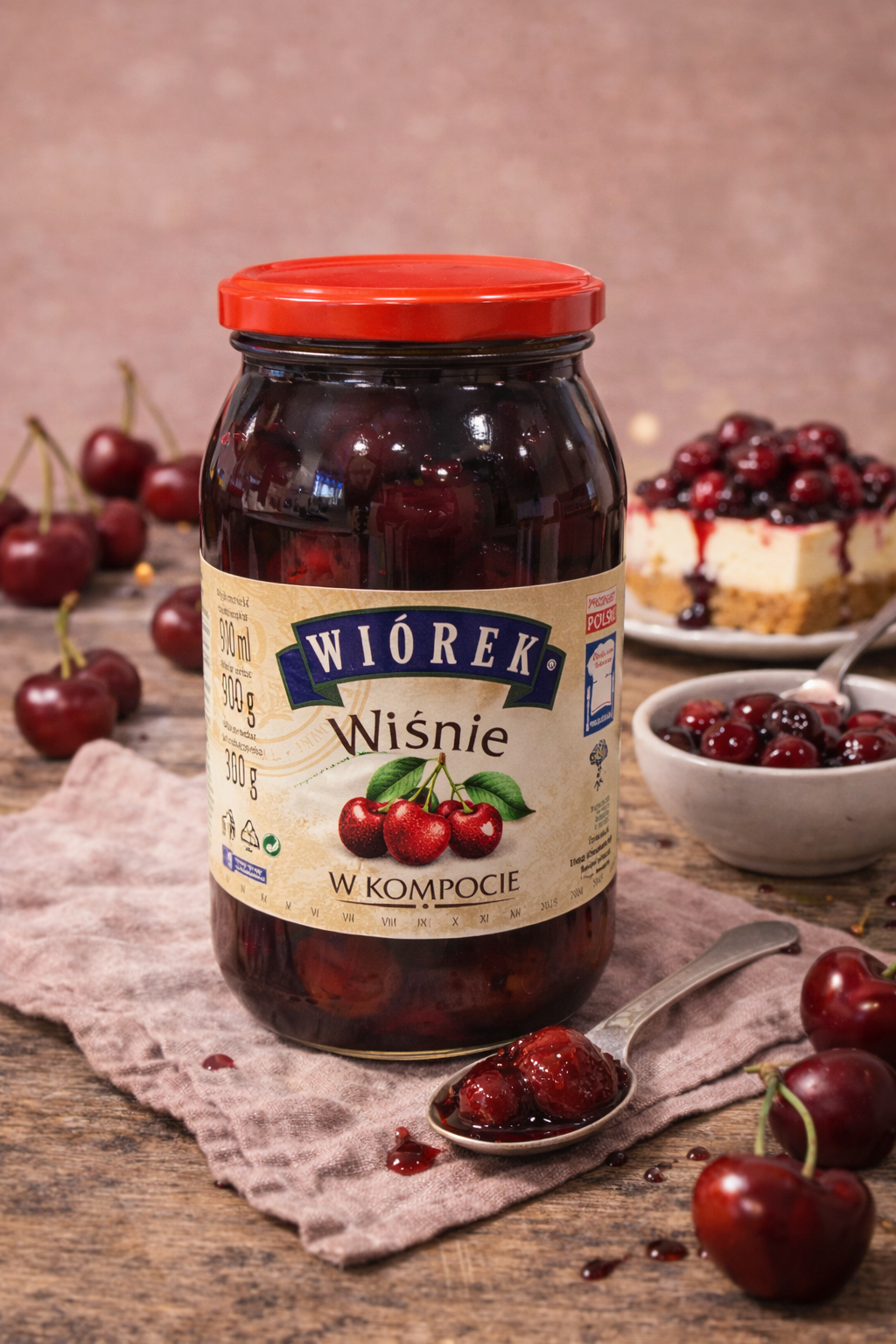 Kompot wiśniowy Wiorek można podawać klasycznie jako napój do posiłku lub wykorzystać jako owocowy dodatek do domowych słodkości.