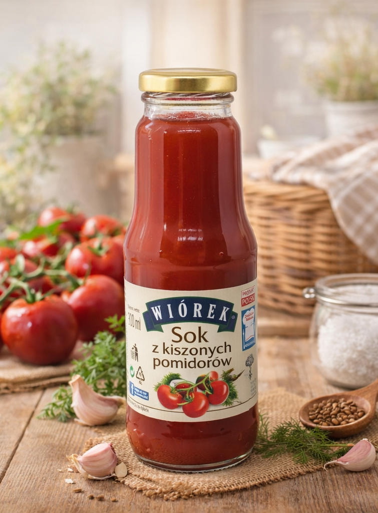 Sok z pomidorów kiszonych Wiorek możesz pić bezpośrednio lub wykorzystać jako składnik potraw.